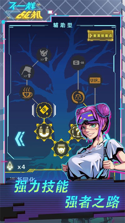 不一样战机是疯狂射击的飞行游戏,结合了Roguelike元素,画风精致复古,各种关卡都非常刺激,自由选择不同的战斗机,可以驾驶战机在空中冒险,完成任务解锁更多的游戏玩法。