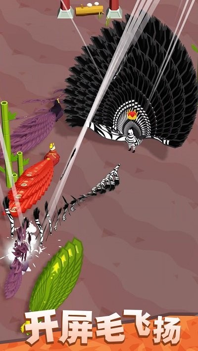 3、灵活的走位,轻松的闯关,需要和各种其他的孔雀进行竞争,去将其他孔雀的羽毛变为自己的