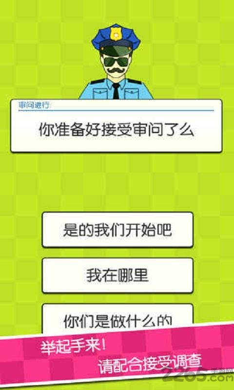 1、选择是的我们开始吧,接受审讯开始游戏。