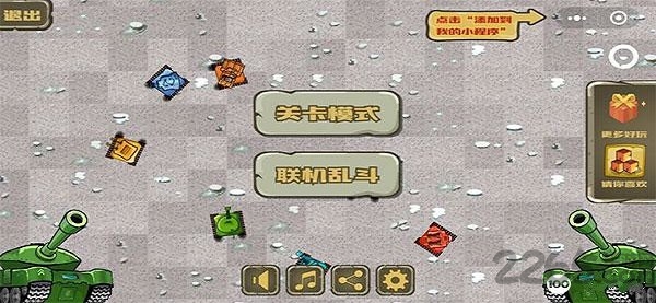 头号坦克最新版更名为超级坦克大战游戏,是像素风的坦克射击游戏,游戏画面简约,玩家操作各种坦克进行射击,玩家在游戏中只需要操作坦克进行射击进行冒险闯关,游戏中设计有各种各样的游戏关卡等待玩家进行探索!解锁更多的坦克!