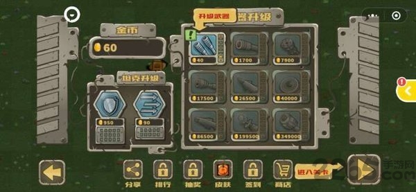 3、升级坦克不光升级坦克的攻击能力,我们还要提升坦克的防御系统,让你的坦克有更强的防御能力。