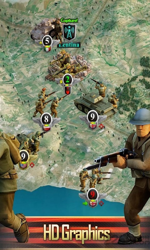 1、加入战场,体验炮火连天的刺激快感,带领你的部队取得胜利,兵种克制,头脑风暴。