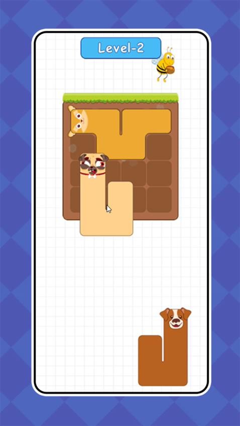 N边形拼图本作是款以动物为主题的休闲益智游戏,玩家需在105个关卡中,通过拖拽和旋转三块狗形方块,将其安放至正确位置以填满目标区域。游戏包含三种难度模式,并设有提示机制辅助通关,适合喜爱空间解谜与轻松画风的玩家体验。