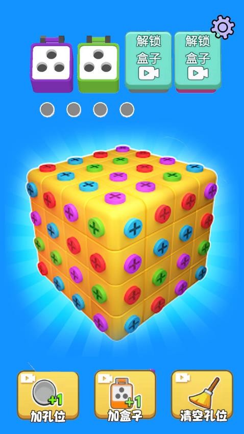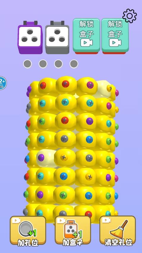 3、可通过观看激励视频解锁额外收纳盒,增加分类容量,帮助玩家更轻松地应对多颜色螺丝的整理挑战。