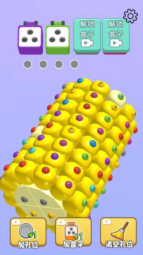 1、游戏包含创新的玉米拆螺丝玩法,每个玉米模型上嵌有不同颜色的螺丝,玩家需将其逐一拆解并分类。