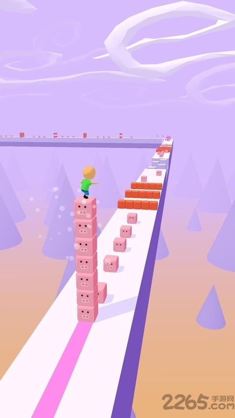 2、操控小人站在方块上越过各种障碍,只要数量够多就可以不断的前行消除危险;