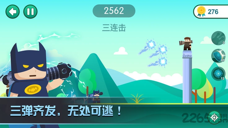2、利用物理反弹机制击中障碍物后方的目标获取高分。