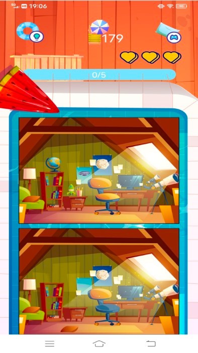 2、仔细比较两边的图片,发现不一样就点下去。
