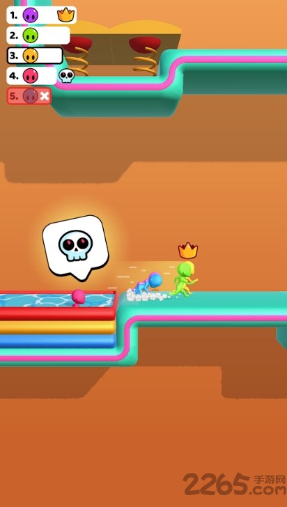 非常有趣的卡通风格的多人对战游戏,游戏中有着各种不同颜色的小人可以选择,玩家需要完成各种高难度的跳跃动作,跨越各种机关陷阱,玩家只需要控制角色跳跃即可游戏,掌控好游戏节奏,非常适合休闲时候打发时间!