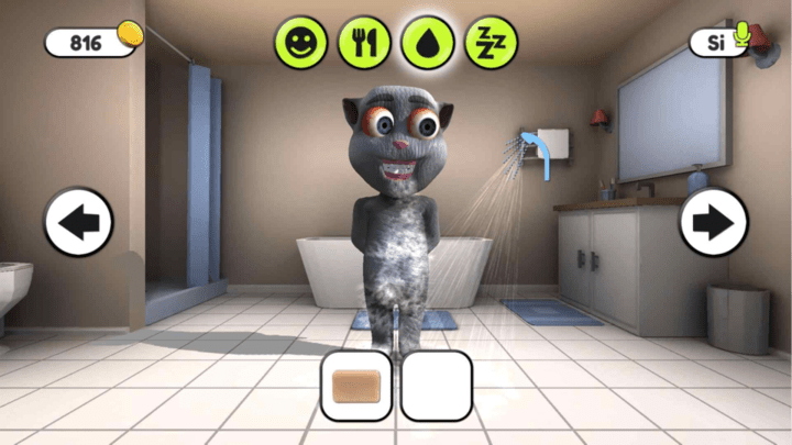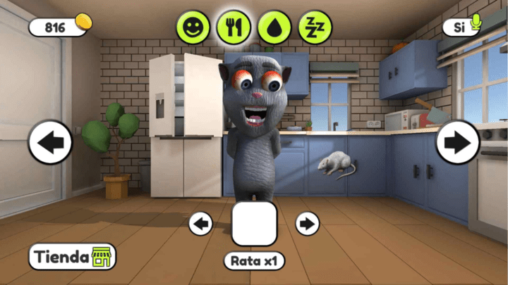 2.玩家可以领养汤姆猫并每天照顾他,去商店买他喜欢的食物,确保他吃得饱、睡得好,