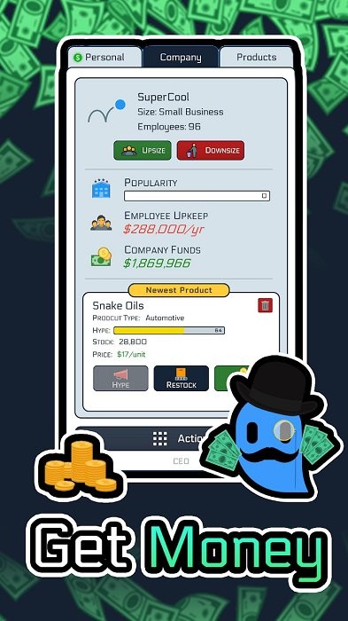找到理想的工作,最大化你的薪水,晋升成为CEO,在游戏中解锁更多独特的职业!