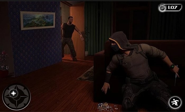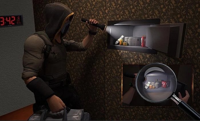 执行偷偷摸摸的动作并激活小偷模拟,闯入房屋并以隐身方式窃取空房子中最有价值的物品