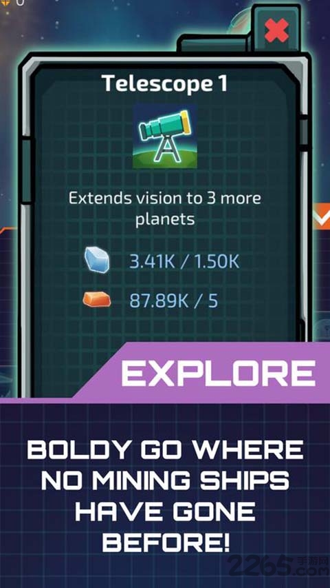 闲置星球矿工最新版是一款经典的采矿游戏,游戏中玩家可以通过经典的经营模式来感受游戏的乐趣,通过各种不同的采矿方式获得更多的金属能源石,获得更多的资源,建立属于你的商业帝国,超多精彩的玩法等你来体验,快来2265安卓网下载吧!