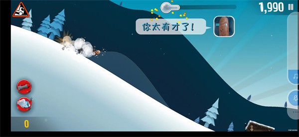 5、道具辅助:收集火箭、雪怪等道具可加速冲刺或破坏障碍,企鹅、老鹰等动物伙伴提供飞行或滑翔能力。
