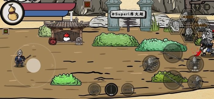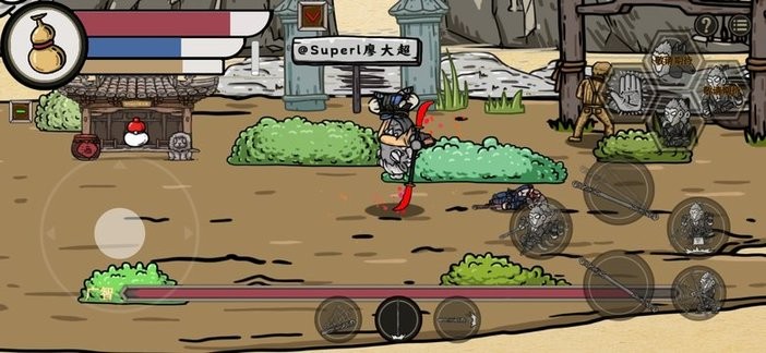 4、右侧的按键作用都不同,比如躲闪、重击、跳跃等。