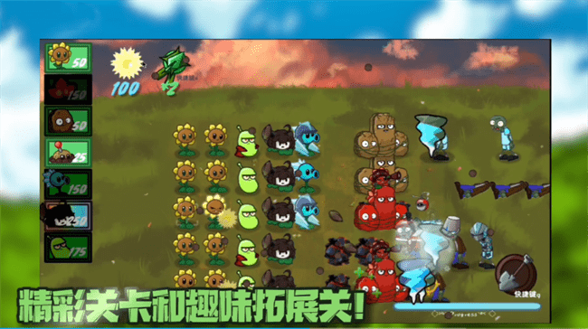 2、全新世界,解锁独特游戏地图,完成新时代战场,成为植物的朋友,打败僵尸。