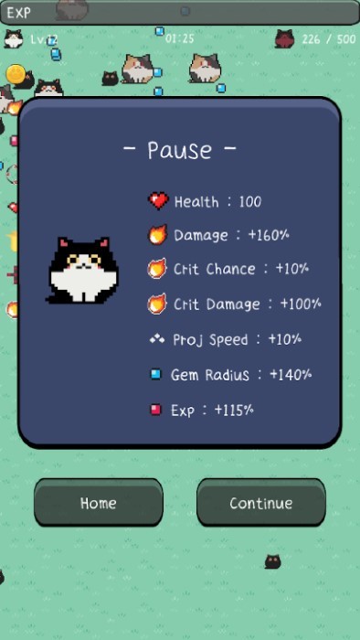 猫咪幸存者是一个闯关的割草系列的战斗游戏,使用自动射击武器击败接近的敌人!