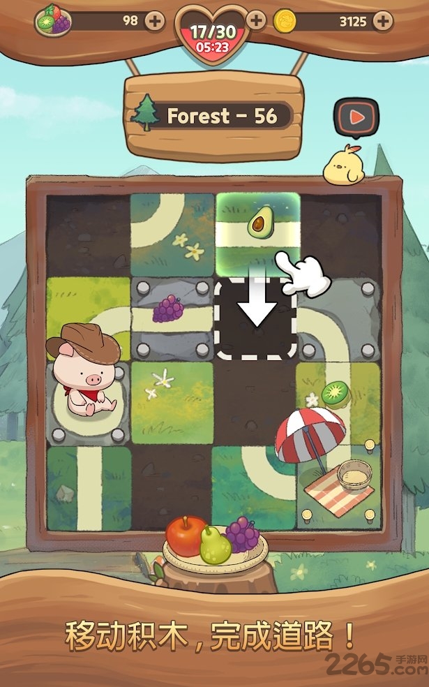 2、全新的拼图类休闲玩法,将积木移动到空白的区域,然后完整的拼凑出一条道路供小猪行走;