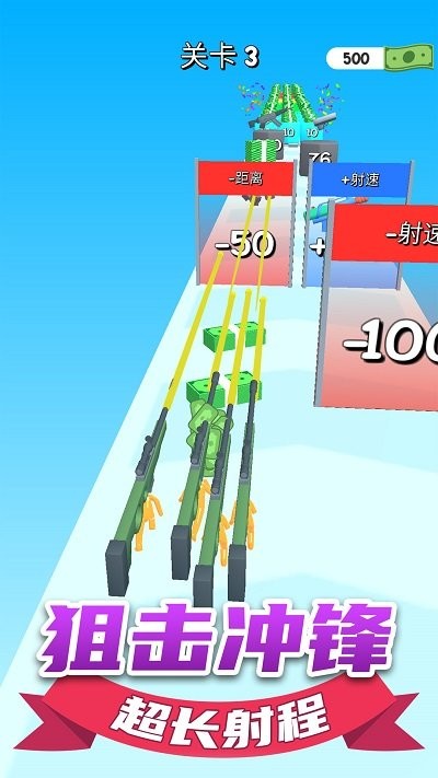 趣味冲刺跑酷小游戏,这里你将加入这场冲刺战场,每个关卡都充满了乐趣,并且不同的场景设置也可以让玩家体验到不同的射击乐趣,以最快的速度击败敌人,快速通关取得更多的丰厚奖励。