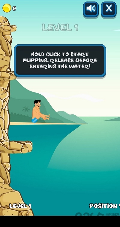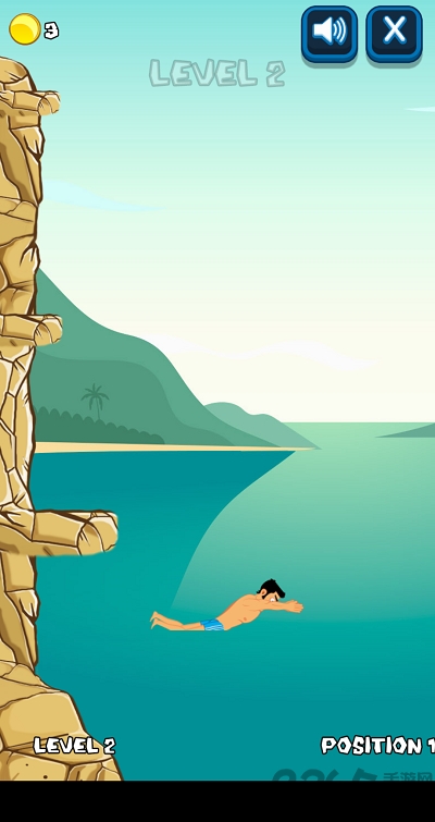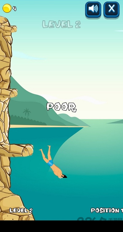 非常休闲的跳水游戏,玩家需要在游戏中控制这个勇敢的大叔完成一些列的高难度跳水动作。站在海边的悬崖上面终身一跃,在空中旋转并调整好入水的姿态,落水时姿势越标准水花压的越小得分就越高, 连续完成3次不同高度的入水即可进入下一关。