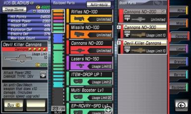 2、根据战况自由配备武器并养成强化机甲战士的能力属性。