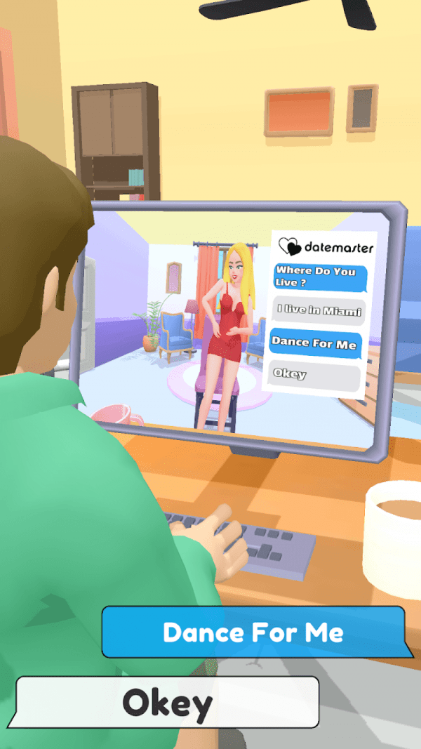 约会模拟器大师中文版是一款模拟网络恋爱的休闲游戏,简易的3d画面,趣味的游戏内容,玩家将通过互联网的方式来结交各种女网友,通过问答的方式来获取她们的喜爱.感兴趣的玩家欢迎来下载体验.