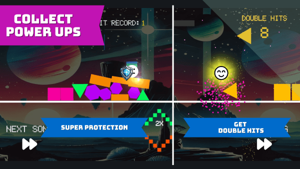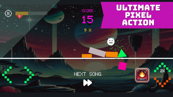 像素跳跃几何入侵手游是一个休闲的跳跃消除游戏,准备好迎接这样的挑战了吗?是你的全新像素艺术游戏,游戏玩法简单:一堆几何图形正在入侵你的空间,你操控一个超级灵活的白色圆圈,跳到它们上面,将所有东西抛向空中。游戏色彩缤纷,刺激刺激,最重要的是,它超级好玩!
