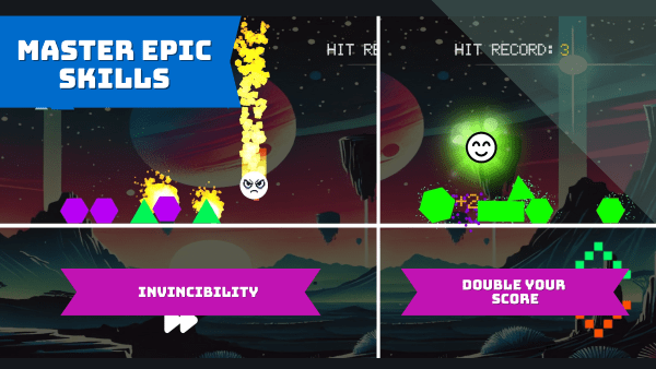 跳跃:每次跳跃都是一次引爆入侵物体的机会,让你亲眼见证一切在五彩缤纷的雨中炸开。你摧毁的越多,获得的积分和连击就越多。