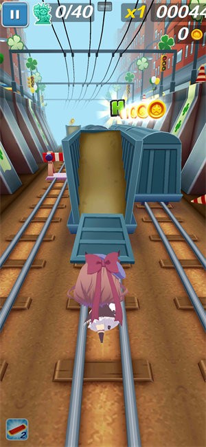 在限定时间内到达终点,避免被火车撞到或掉入深渊,同时收集金币和道具提升分数。