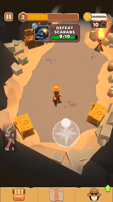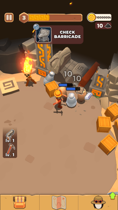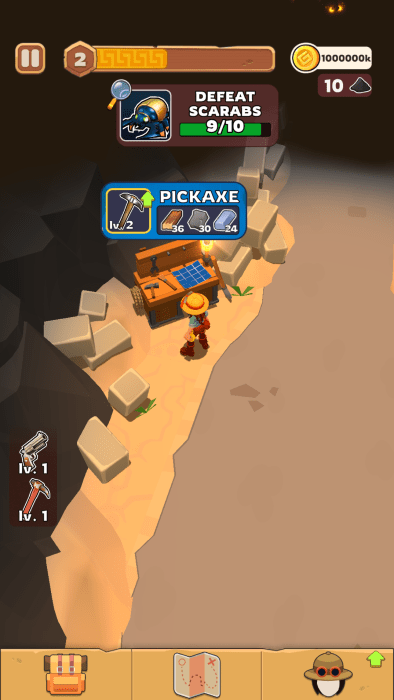 粉碎和农场!用镐打破障碍和文物以收集资源。