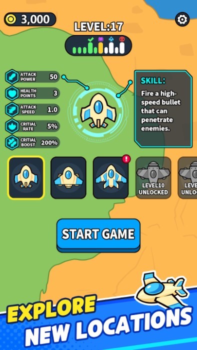 在游戏中你可以选择不同的飞机,前提是关卡解锁。