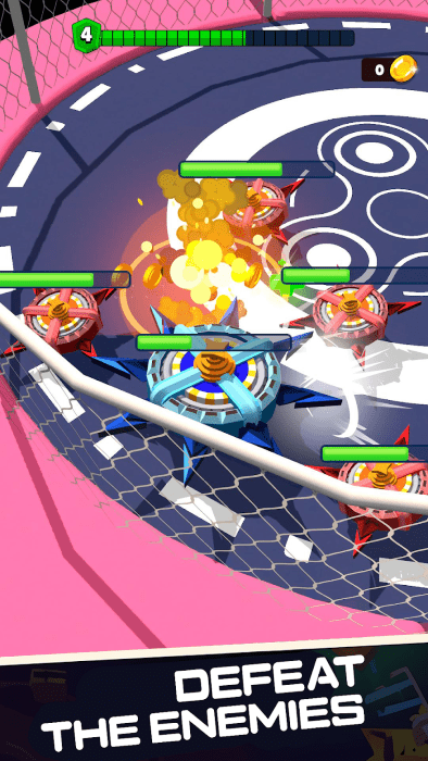 游戏中有各种各样的敌人,它们会不断追逐玩家的陀螺并试图击败它。玩家需要灵活运用技巧,尽力躲避敌人的攻击,保持陀螺的安全。