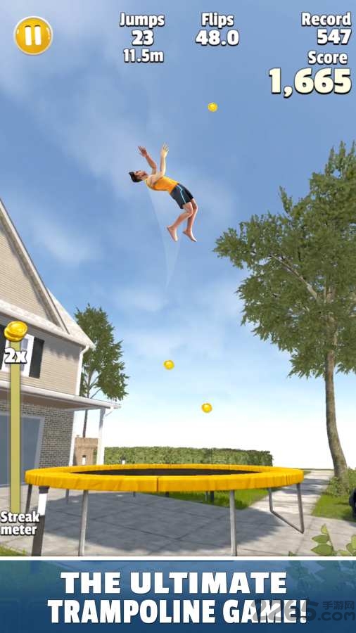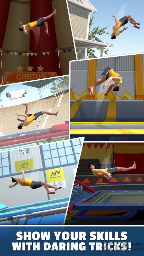 超好玩的休闲益智类型的游戏,能变化各种跳跃姿势,操作简单,解锁各种技能,喜欢蹦床的玩家,玩家可以在蹦床上完成前、后、空翻等特殊动作来取得高分,玩家可以试着进行各种动作而不会觉得古怪,你还可以自定义你的角色并对他进行升级。