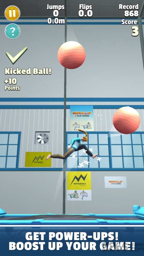 3、可以选择大量的物品,2265泡沫立方体或者健身球,在蹦床上完成更多的技巧动作。