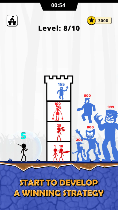 采取明智的步骤击败火柴人,进化火柴人战士,释放超能力,在这场英雄战争中走得更远。