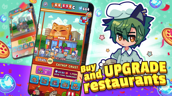 经营您的专属披萨店,随心定制您的披萨店。聘请技艺精湛、个性鲜明的猫咪厨师,看着他们亲手制作令人垂涎欲滴的美食杰作。从经典的意大利辣香肠到异域风情的菠萝和金枪鱼,选择无穷无尽。
