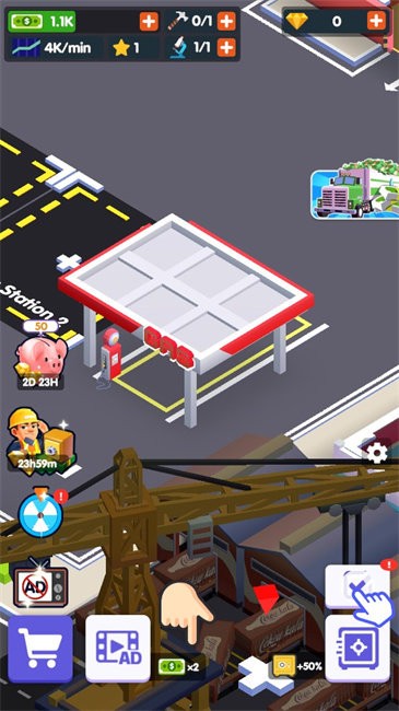 每个参与者都从经营一个小型加油站开始业务,并通过建立包括住宿和卡车服务店在内的众多设施来扩展业务。通过升级加油站和开放更多停车场,玩家可以建造洗车、餐厅、浴室和便利店等其他建筑。