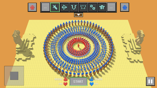 是时候享受最有趣的战斗模拟器游戏了! 创建大规模的战术战斗,并观看他们在用有史以来最愚蠢的物理系统制作的模拟中战斗Blocky Ragdoll Battle 是一款基于物理的策略游戏,您可以成为红色和蓝色块状布娃娃的领导者。 观看他们在用有史以来最愚蠢的物理系统制作的模拟中战斗。只需选择部队并通过接触地面来添加他们即可创建大规模的战术战斗! 现在,您可以完全改进您的军队,观看布娃娃效果并发现许多史诗般的军队。 拥有不同技能和滑稽面孔的史诗部队,您将享受他们的战斗风格和他们发出的搞笑声音以及他们如何模拟战斗。