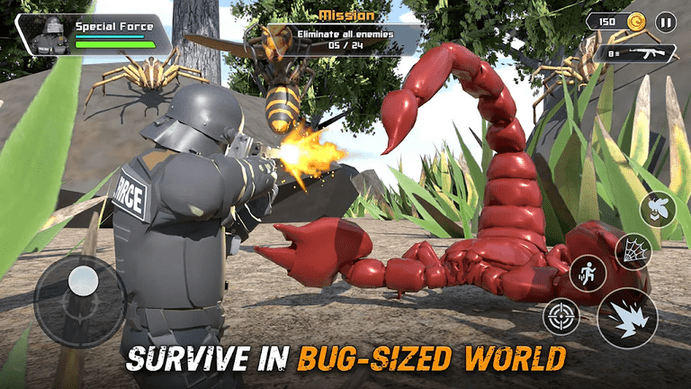 策略玩法:升级你的武器来对抗巨型昆虫,并收集物品以完成激动人心的任务!