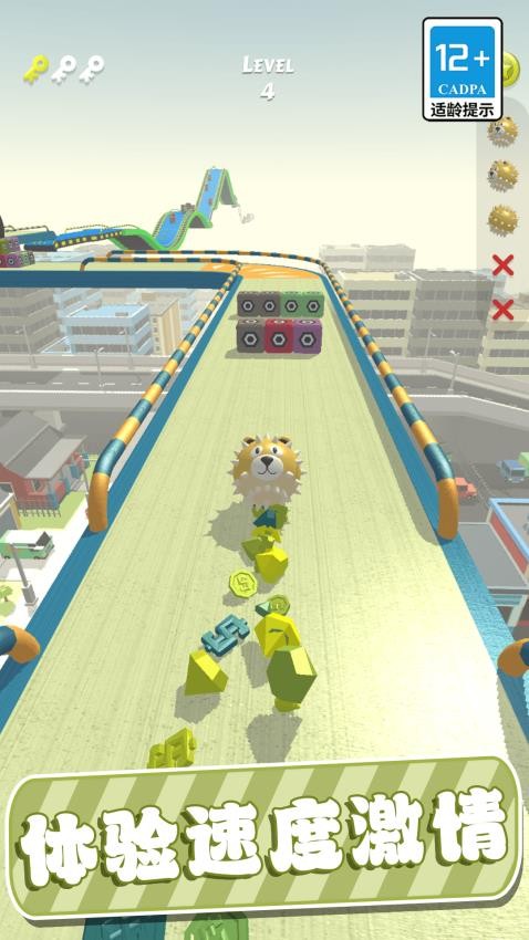 3、设计长度与复杂度渐进的跑道,随着关卡深入将出现更具挑战性的地形,考验玩家的操作与反应。
