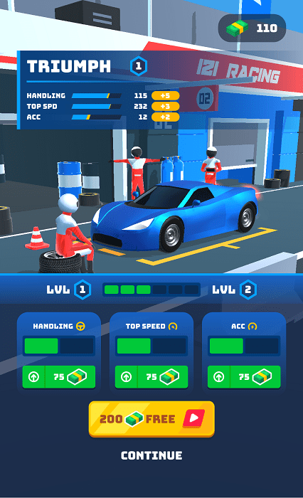 1、每次结束都会给你一些金币,可以购买一些新的车辆,并且对它进行升级。