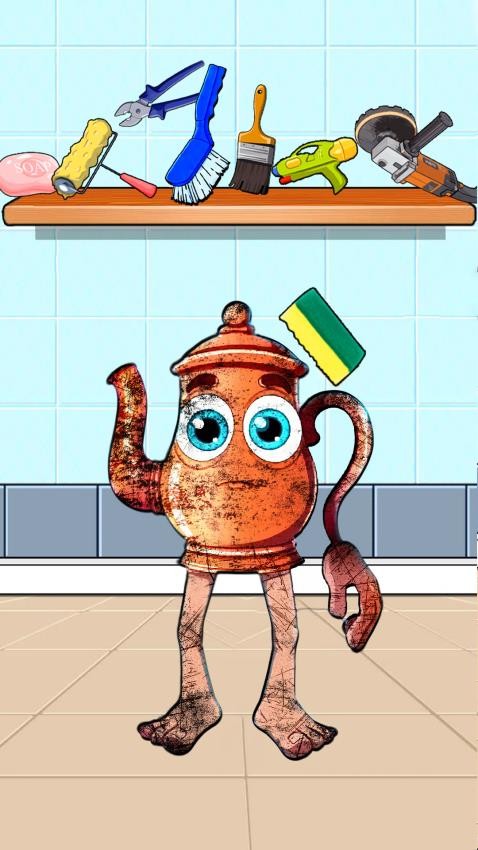 3、需处理生锈、污损、油漆覆盖等不同状态的脏污角色,通过清洗使其恢复洁净。
