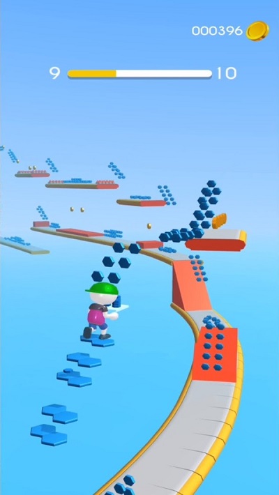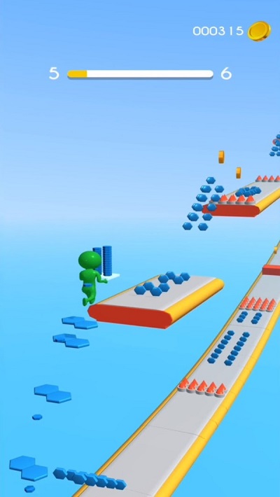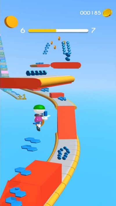 ·将收集的砖块全部堆叠,在抵达游戏终点后将它推倒,砖块越多最终的奖励也将越丰厚