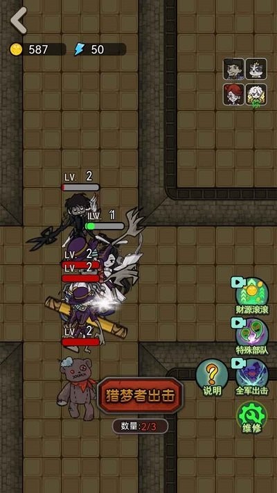 2、升级自己的炮塔,尽情的射击对决,猛鬼在不断的入侵,时刻做好准备;
