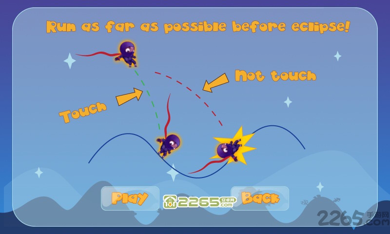 Moon Chaser的游戏主角是一位月光忍者,需要在月亮消失之前快速奔跑到目的地,月亮的圆缺表示时间进度,当月亮全黑后(月全食)你还没有赶到目的地的话,游戏就失败了。