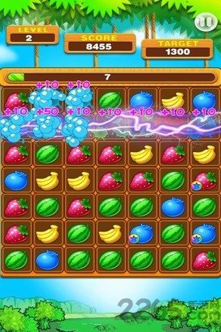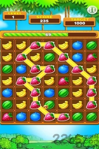 水果连连消游戏是一款休闲好玩的水果主题的益智三消类游戏,轻松的手指操作玩法让你快速上手游戏,背景音乐十分的轻松欢快,营造良好的游戏氛围。感兴趣的玩家就快来2265手游网下载吧!
