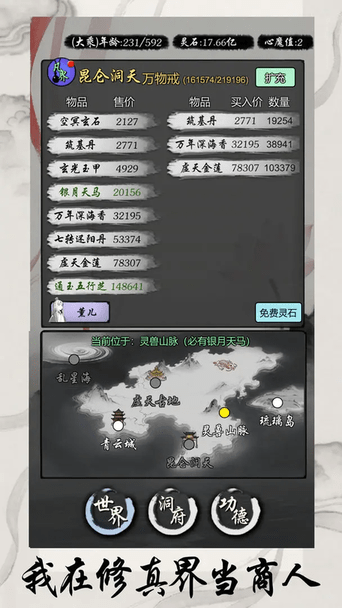 5、游历凡界,买卖修真宝物,靠策略赚取灵石,提升境界。