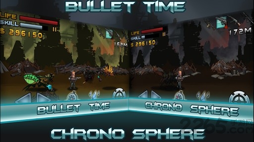 点击“Play”开始游戏,只见一个老兵站在眼前,目的很简单,就是一路向前行进抵达终点、一路上你会看到各种虫虫士兵,或是从正前方出现,或是从背后向你缓缓袭来,但不管怎样,你必须活着抵达终点,当右上角显示的里程数为零时你就可以为胜利而欢呼了。