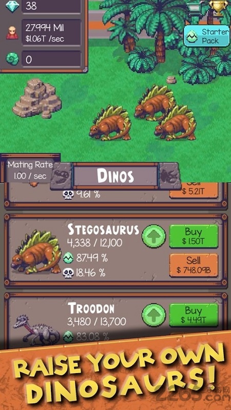 ★在贸易站出售您的恐龙以获得宝石,这些宝石可以用来促进您的进步