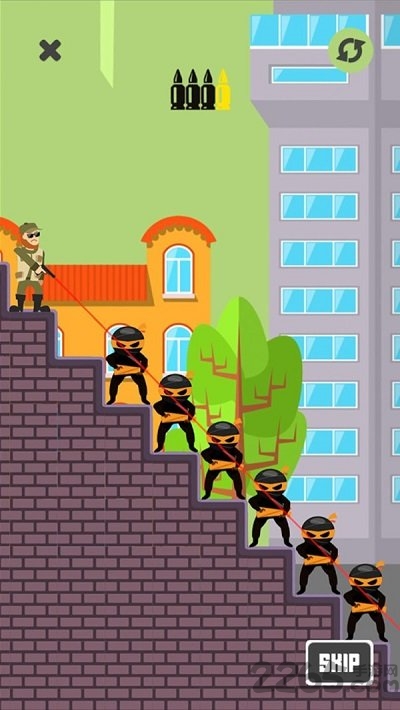 非常不错的射击闯关类游戏,游戏采用简约的画面设计,游戏玩简单易操作,在游戏中玩家需要消灭关卡中所有敌人即可获胜,带你感受最精彩刺激的射击对决,喜欢的朋友快来下载吧!